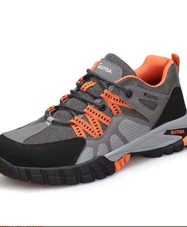 Zapato de seguridad GUYISA modelo A1105A color gris oscuro y naranja, talles 40.41,42,43.